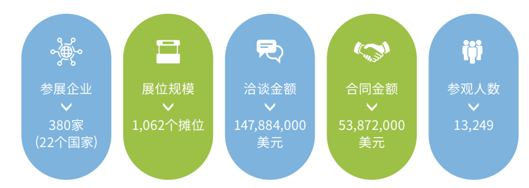 2024年,展览总面积达2万平方米,共有来自全球22个国家的380家企业参展。其中,境外国家馆涵盖南非、挪威、印度、日本、智利等21个国家。此次展览吸引了来自全球的13249名专业观众到场观展并洽谈业务,相较于2023年的12135人,增长了9.18%,聚集大批强大采购团队,助您深度挖掘进出口商业良机。